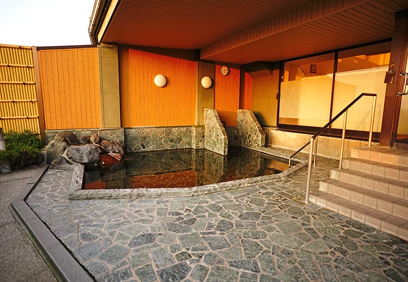 渡り廊下から建物入口へむかう途中に、飲泉があります。是非おためしください。