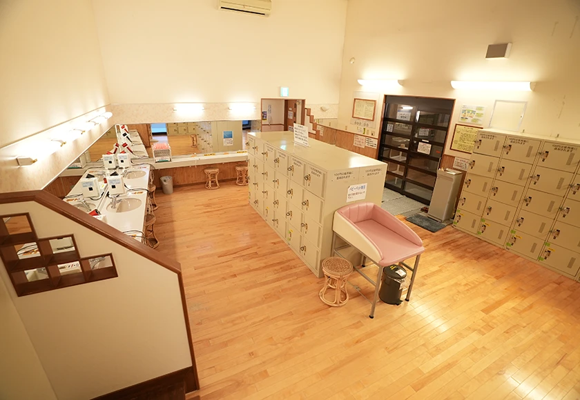 | 浴場・脱衣場 | ・洗い場…15ヶ所(ごまどうの湯)/13ヶ所(あじさいの湯) ・リンス、シャンプー、ボディソープ備付 ・洗面台…7箇所(クシ備付 ※ウォータークローション、クレンジングは女性のみ) ★ドライヤーは4台有料(5分100円/dyson製)ご自宅のドライヤーをお持ち込みいただいて使用することも可能です。 |